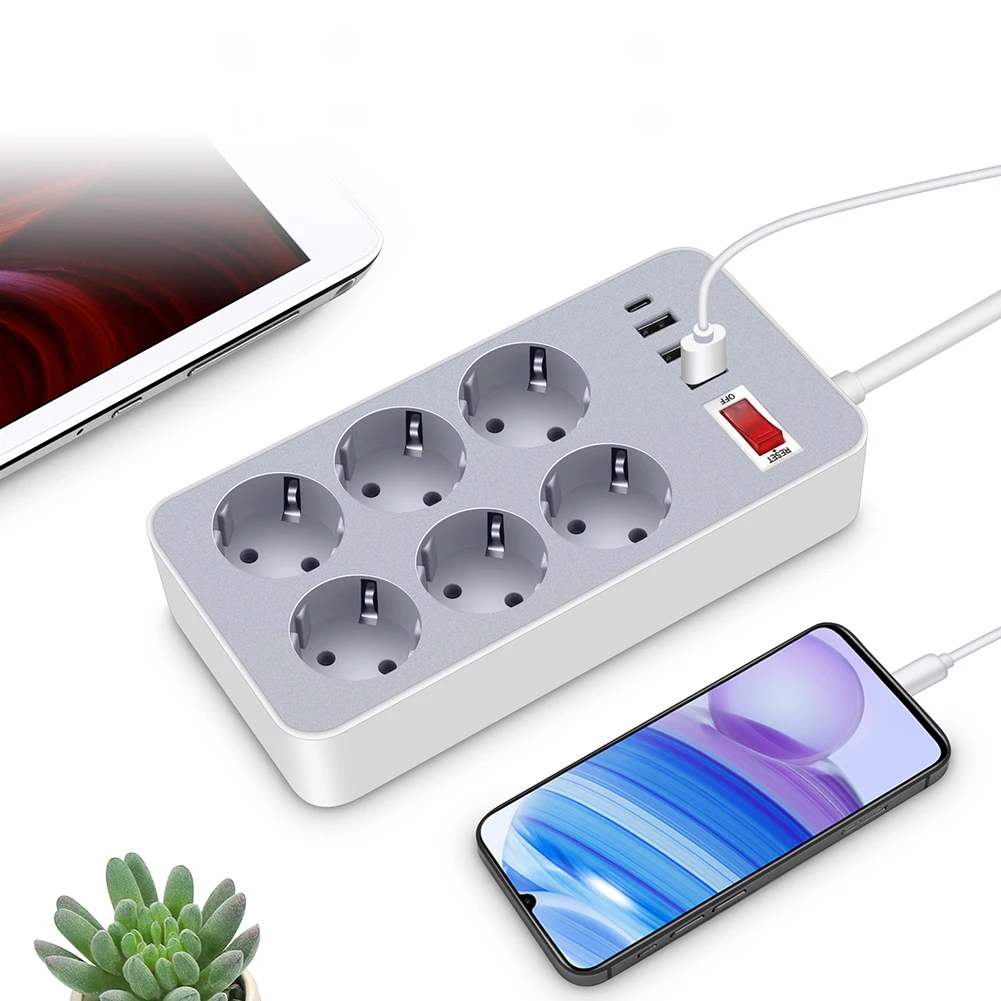 EU Plug Power Strip 10A 110V 220V Multi Plug Socket 3 USB 1 Type-C Power Multi Tap with Extension Cable Charge Electrical Socket