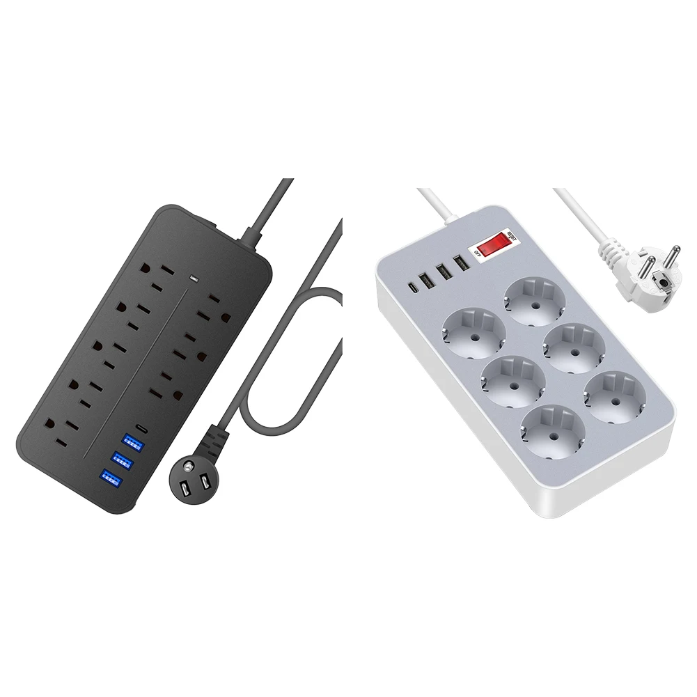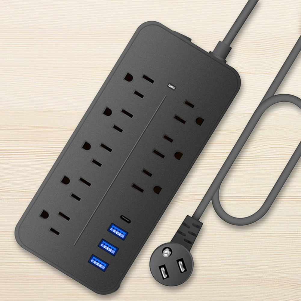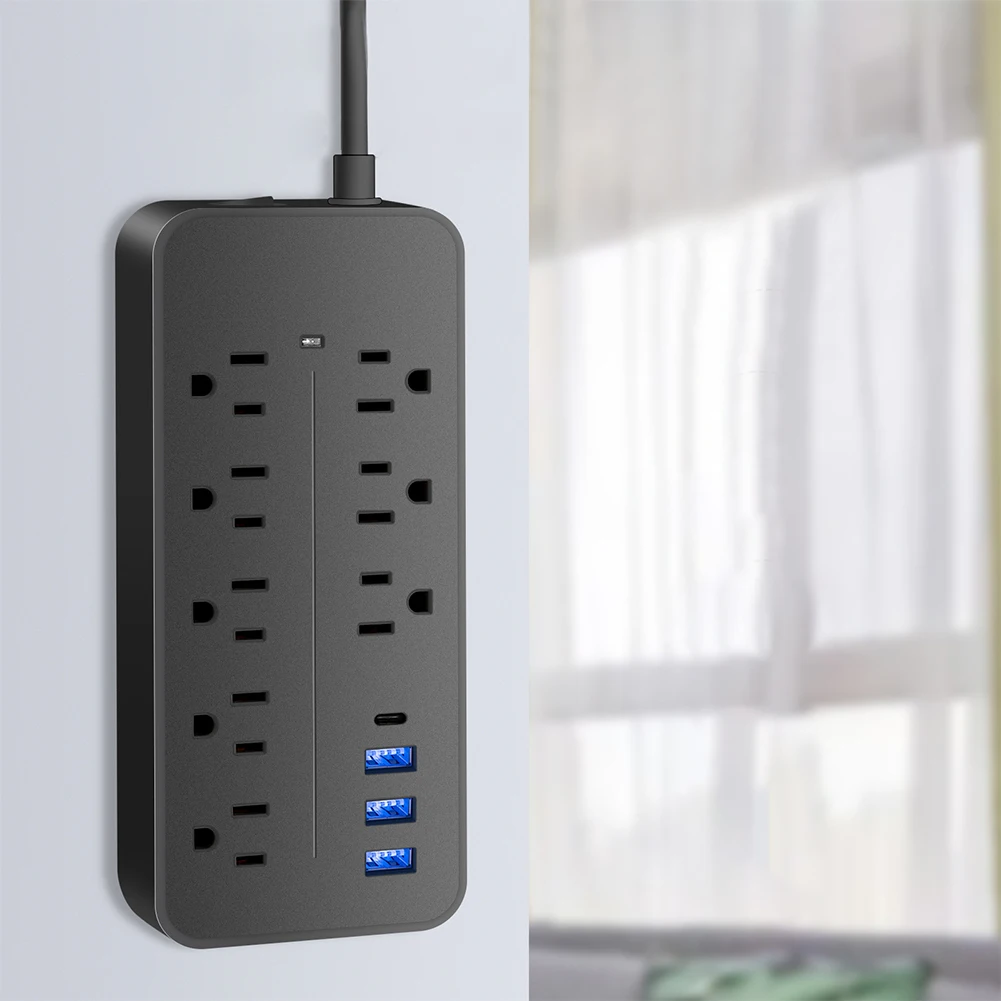 1. Surge-Protected Power Strip: This US power strip expands 1 wall outlet into 8 AC power sockets (6 for Euro plugs), 3 USB ports, and 1 Type-C port. No need for multiple chargers as it conveniently charges for iWatch and other devices. Note: It does not support Qualcomm Quick Charge.