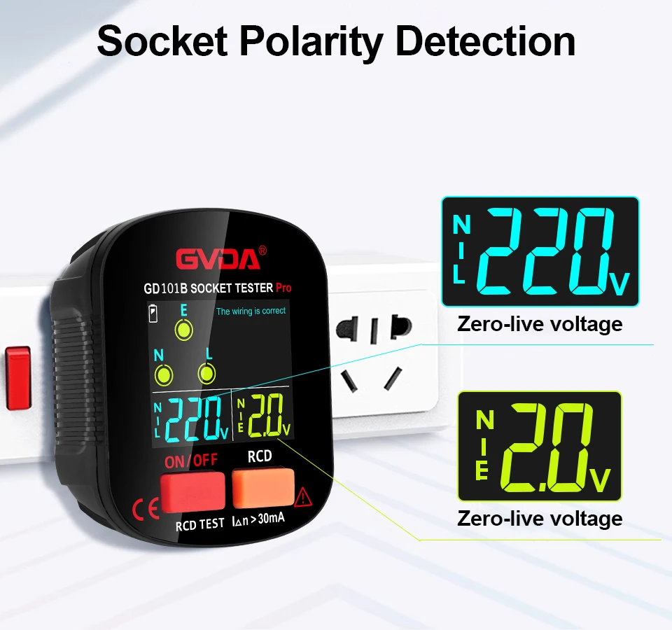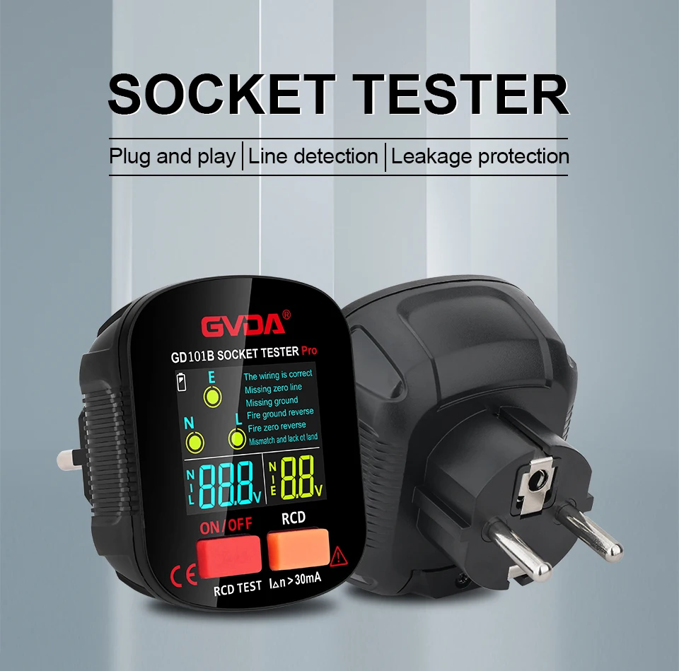 GVDA GD101B Socket Tester Pro Voltage Test Digital Outlet Socket Detect EU Plug Ground Zero Line Plug Polarity Phase Check