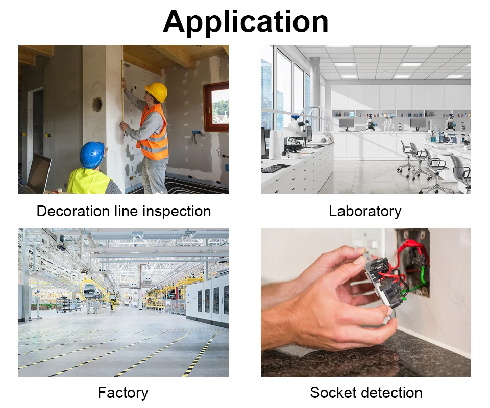 This product is mainly used for the polarity detection of the three-hole power socket wiring and the protection function detection of the leakage switch. It can quickly and accurately detect the wiring condition of the socket, and can timely detect the socket lines that cause electric shocks, electric fires, and abnormal equipment operation question. It is widely used in fire protection,safety supervision, home improvement, laboratory, factory and home line inspection and maintenance.